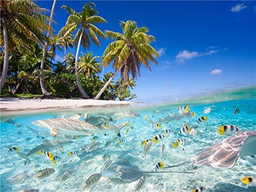 Amazon Com Huanyi Tropical Scenery Sea Beach Palm Trees Fish