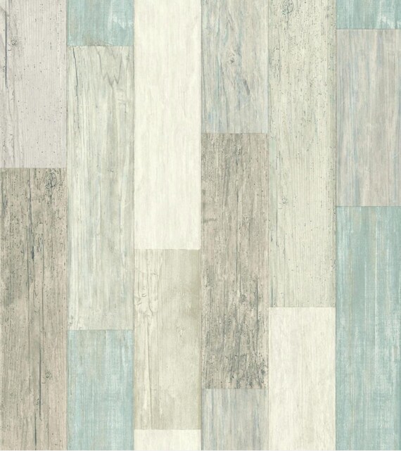 Removable Wallpaper Aqua Blue Beachwood Wallpaper Wall Mural Etsy