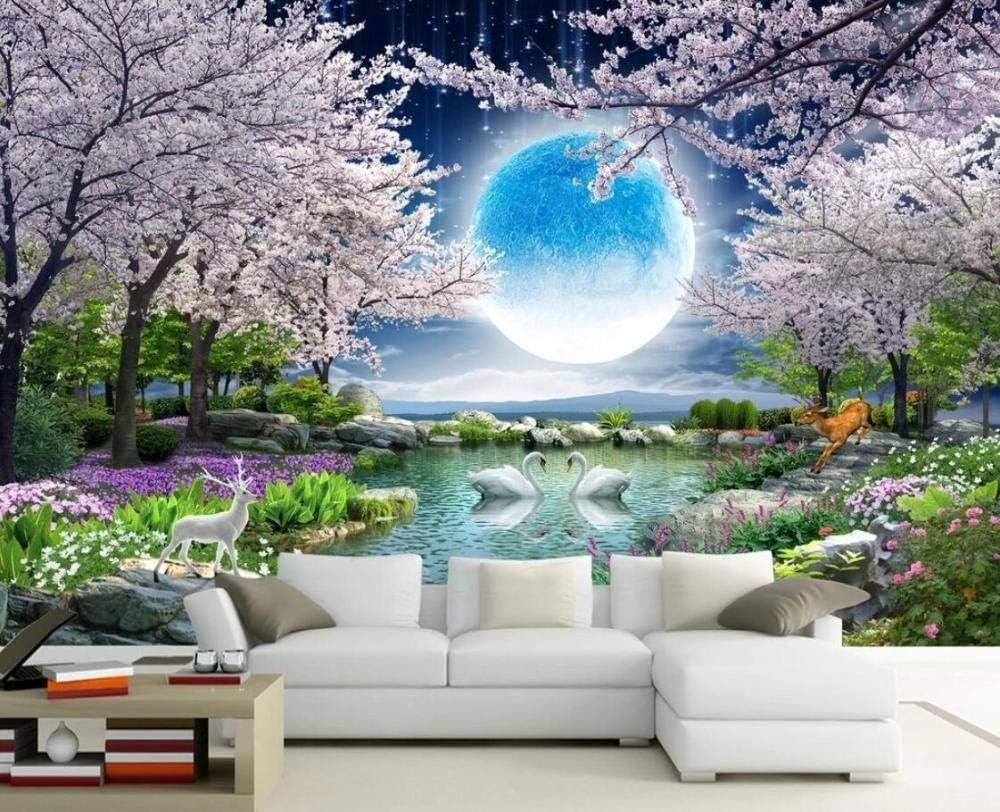 Wallpaper 3d Mural Beautiful Moon Cherry Blossom Tree Landscape