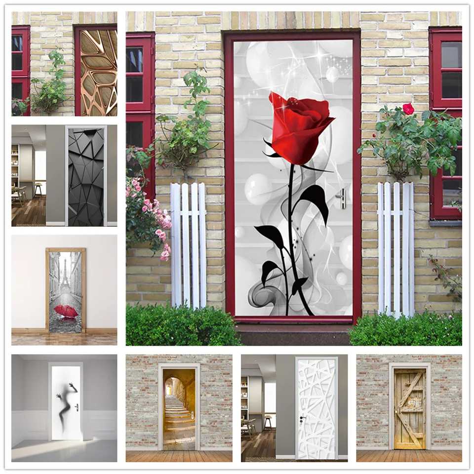 Flower Door Stickers Home Decor Living Room Bedroom Removable Wallpaper Adhesive Waterproof Poster Papier Peint Porte 3d Decals Door Stickers Aliexpress