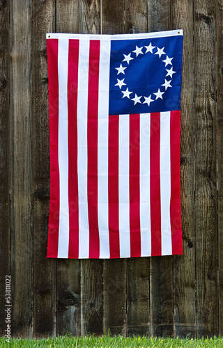 13 Star American Flag The Betsy Ross Flag Displayed On Rustic