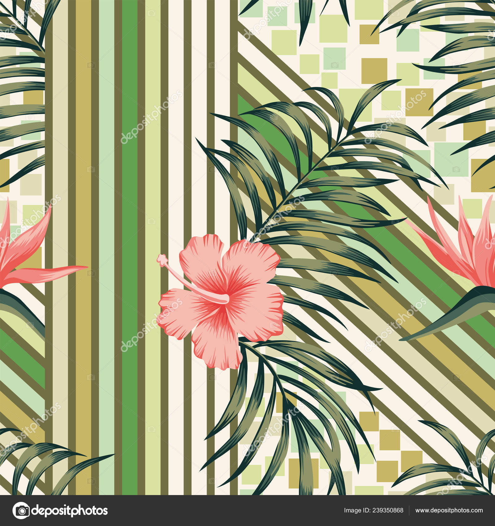 Abstract Seamless Wallpaper Exotic Composition Tropical Palm