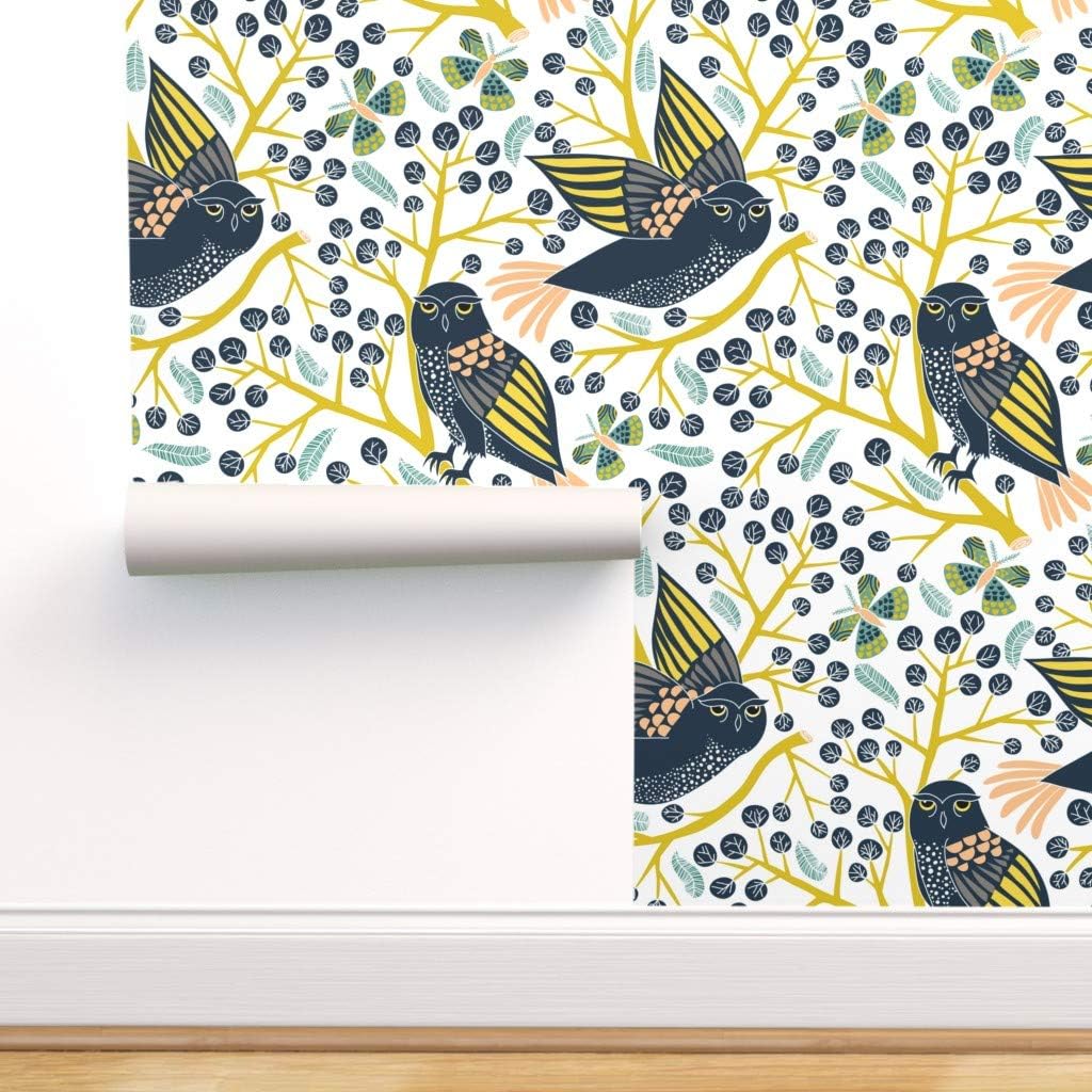 Spoonflower Peel And Stick Removable Wallpaper Owl Mod Bird Block