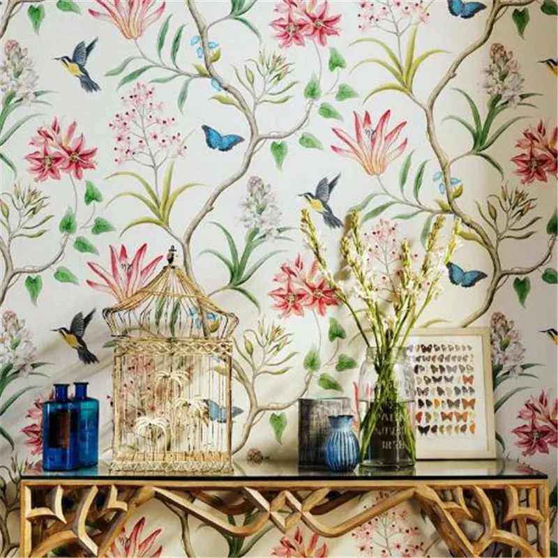 American Style Rustic 3d Wallpapers Rolls Vintage Floral Birds