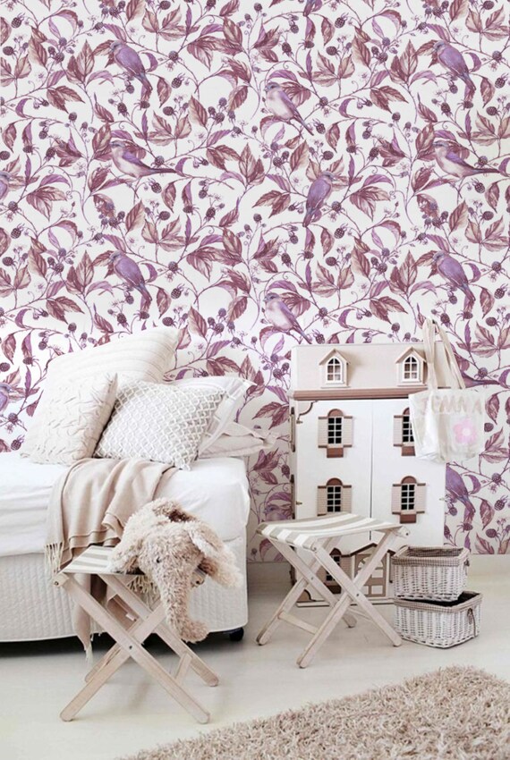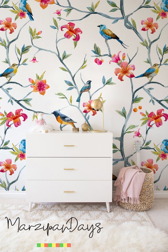 Birds On Branches Removable Wallpaper Wildlife Birds Etsy