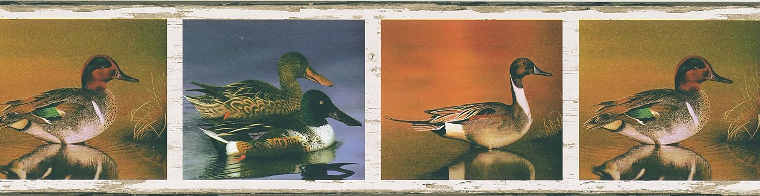 Ducks Lodge Hunting Birds Wallpaper Border Green Plaid For Sale