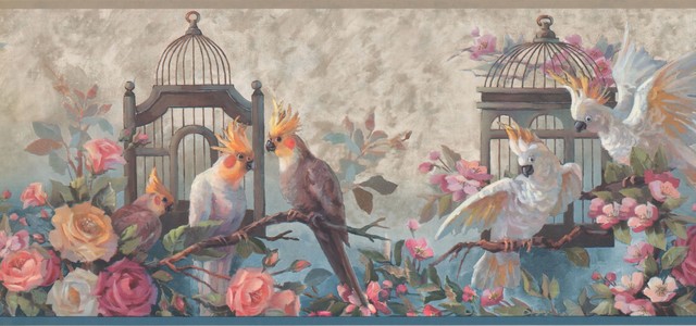 White Cream Birds Zn76167 Wallpaper Border Gifted Parrot