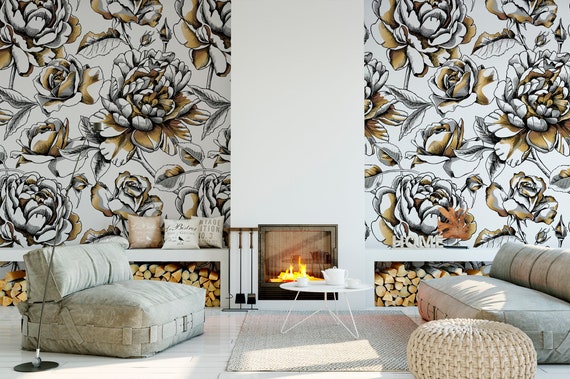 Removable Peel And Stick Wallpaper Gold White And Black Etsy