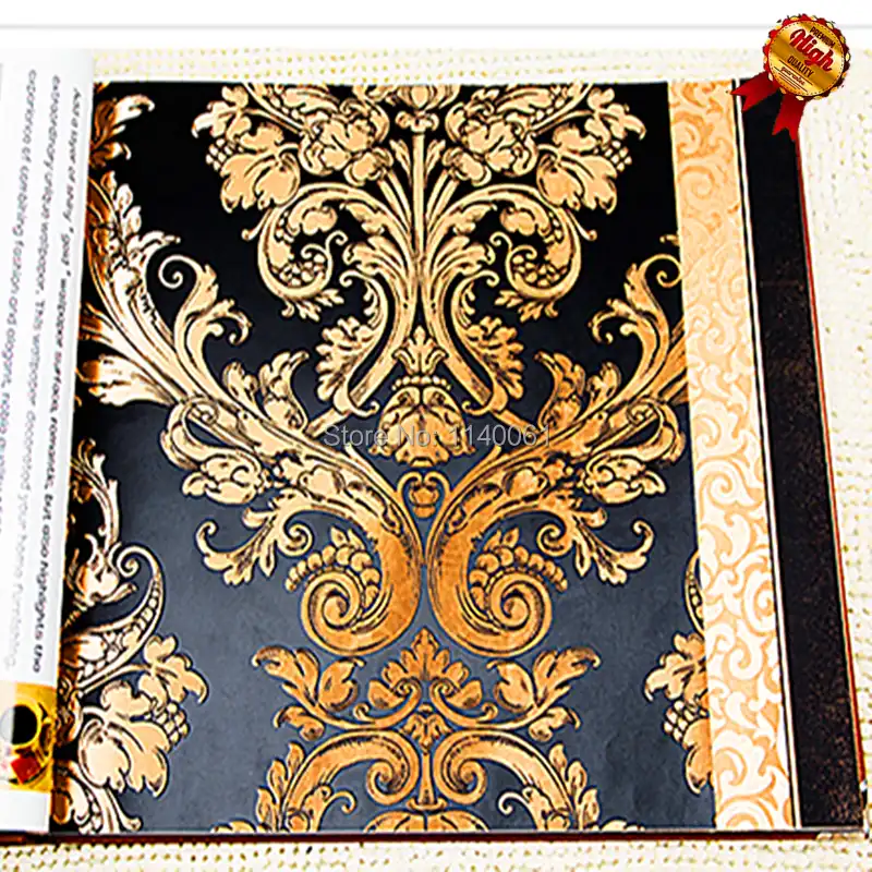 Luxury Damask Wallpaper Mural Black And Gold Embossed Wall Paper
