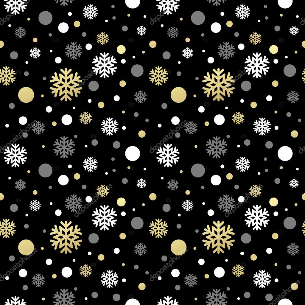 Christmas Snowflake Seamless Pattern Gold Snow Black Background
