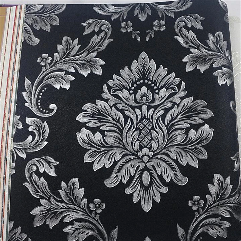 Classic Black Velvet Flocking Damask Wallpaper Textile Wallcovering For Sale Online Ebay