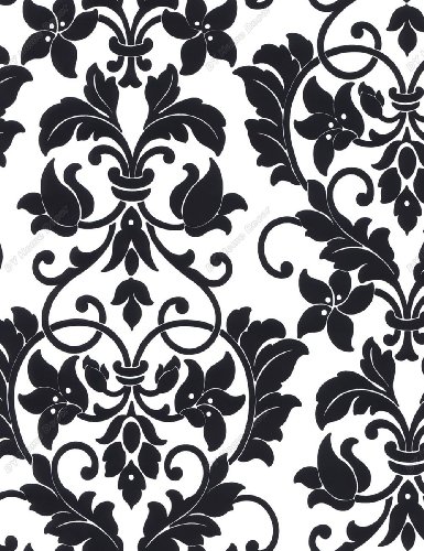 195019 White Black Flock Damask Wallpaper Wallcoveringsmart