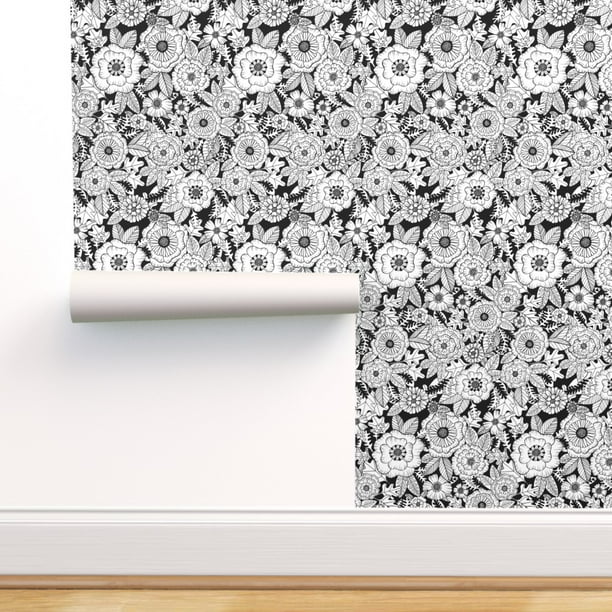 Spoonflower Peel And Stick Removable Wallpaper Flower Black White