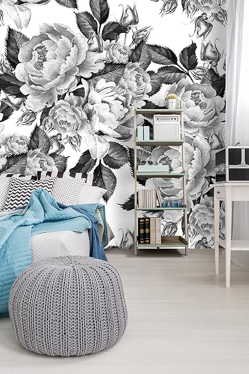 Peel And Stick Removable Wallpaper Floral Black And White Flower