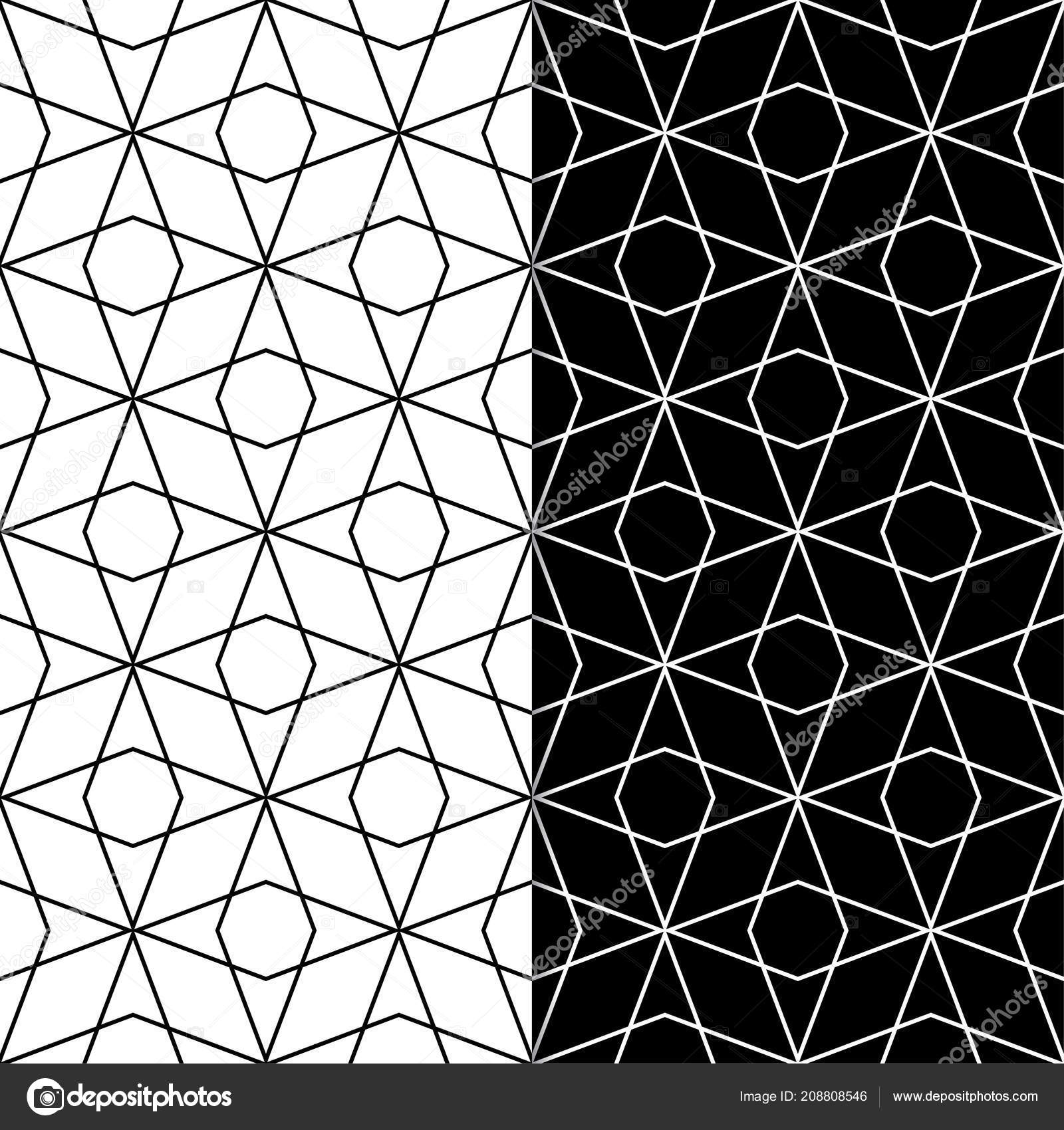 Black White Geometric Ornaments Set Seamless Patterns Web Textile