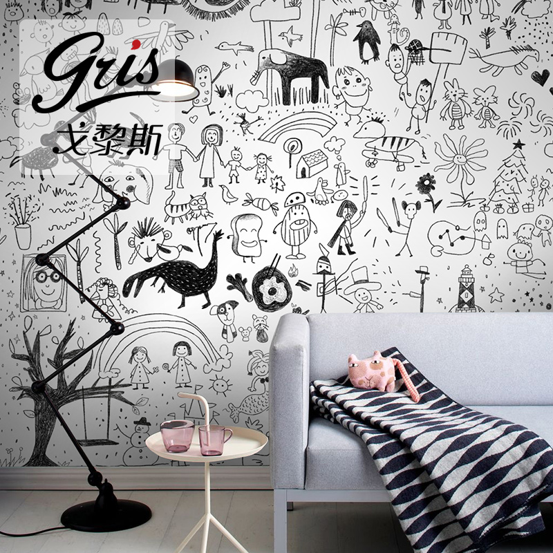 Black And White Graffiti Background Wall Children S Room Wallpaper