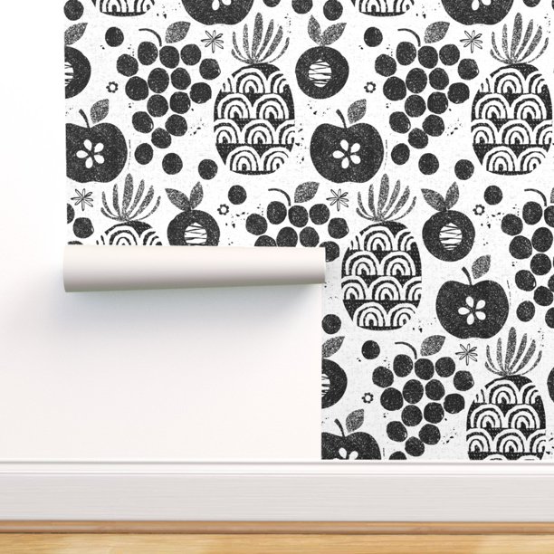 Removable Water Activated Wallpaper Fruit Food Black White Modern