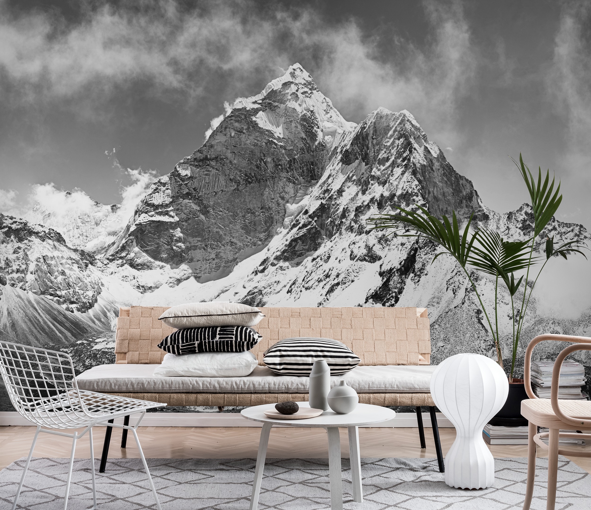 Black And White Mountains Wall Mural Mountain Wallpaper White
