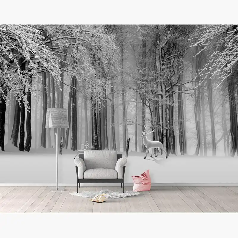 Black And White Snow Landscape Photo Mural Wallpaper 3d Stereo