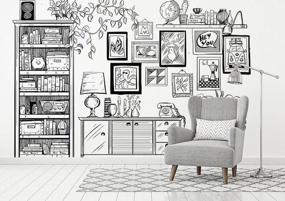 Black And White Mural Wallpaper Mural Black And White Etsy