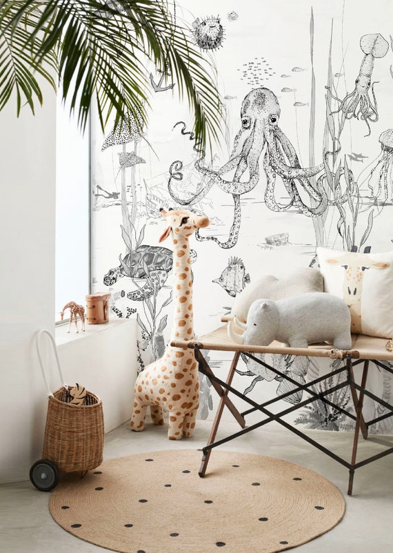 Ocean Wallpaper Underwater Wonders Black White Mural Etsy
