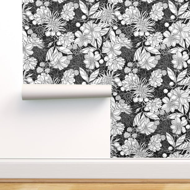 Peel And Stick Removable Wallpaper Floral Botanical Black White Flower Coloring Walmart Com Walmart Com