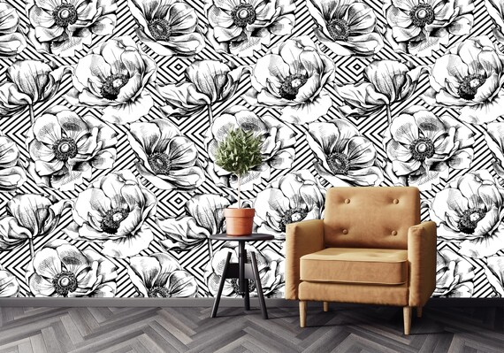 For example if you have a wall that is 8 feet wide you would need to order 4 sheets you will receive sheets 1 through 4 as shown in the illustrated. Black white peony flower wallpaper peonies wallpaper floral wallpaper flower wallpaper marvelous bouquet composed by peonies in black and white. Only 15 left in stock order soon.