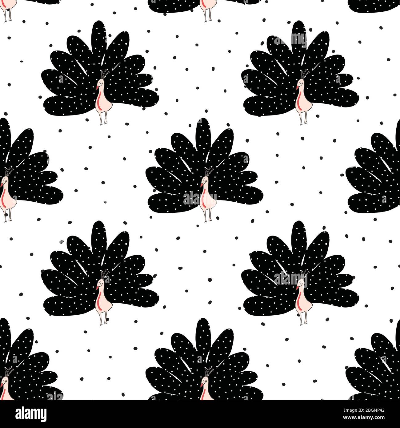 Abstract Capercaillie Seamless Vector Pattern On Black And White