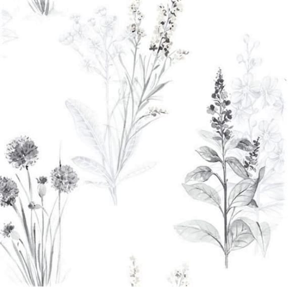 Black White Contemporary Botanical Toile Wallpaper Modern Etsy