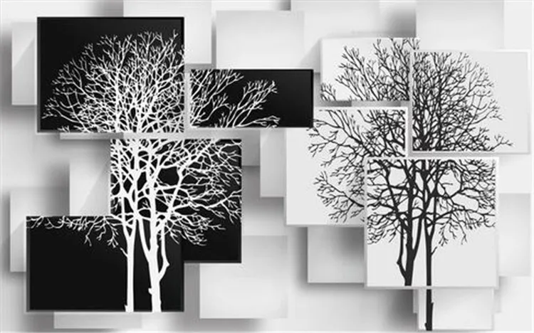 Custom 3d Mural Wallpaper Simple Black And White Tree 3d