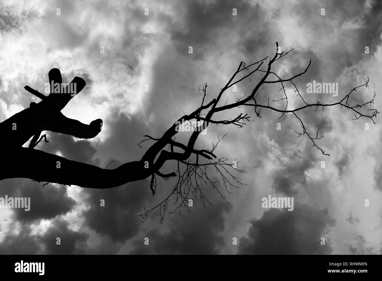 Black And White Tree And Clouds Depressing Wallpaper Stock Photo