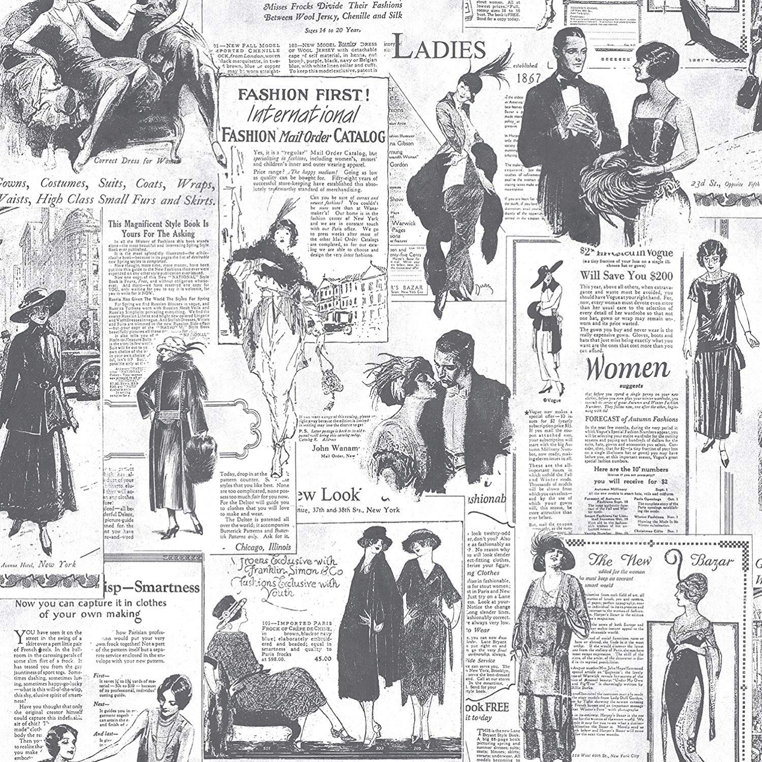 Vintage Advertisement Wallpaper Roll Black White Newspaper