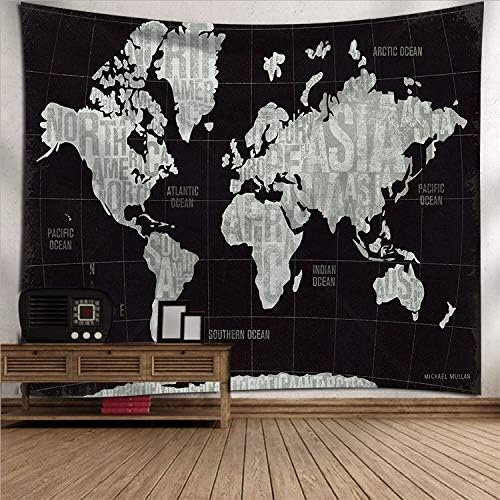 Amazon Com World Map Tapestry Wall Hanging Black And White