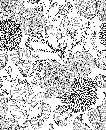 Black And White Floral Pattern Wallpaper For Walls Sketch Floral