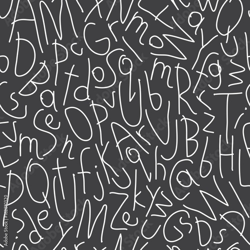 Seamless Pattern With Hand Drawn Letters On Chalk Blackboard Simple Kids Drawing Style White Elements On Black Background Funny Vector Design For Children Print Wrapping Wallpaper Scrapbook Buy This Stock Vector
