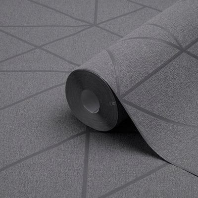 Goodhome Patula Dark Grey Geometric Textured Wallpaper