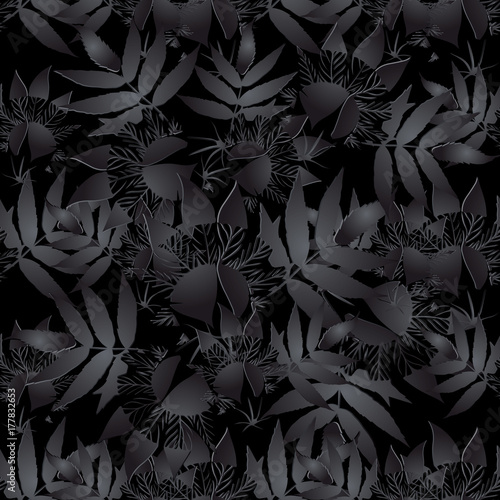 Floral Seamless Pattern Dark Black Leafy Background Modern