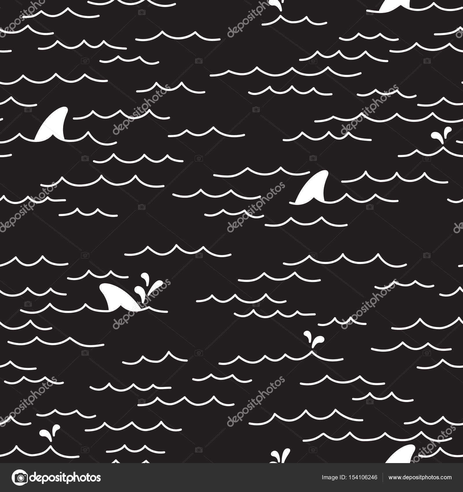 Oceanic Wallpaper Sea Ocean Shark Doodle Seamless Pattern Black