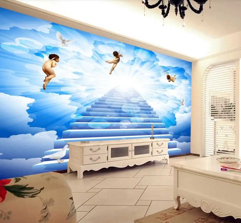 Beibehang Custom Wallpaper 3d Mural Blue Sky White Clouds Angel