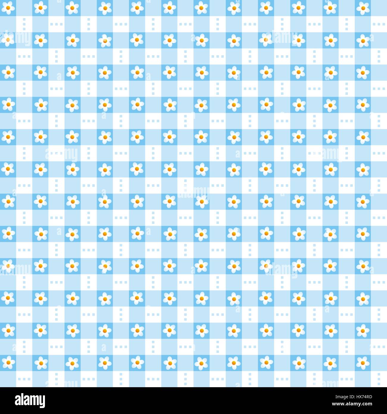 Seamless Repeatable Blue Floral Checked Pattern Stock Vector