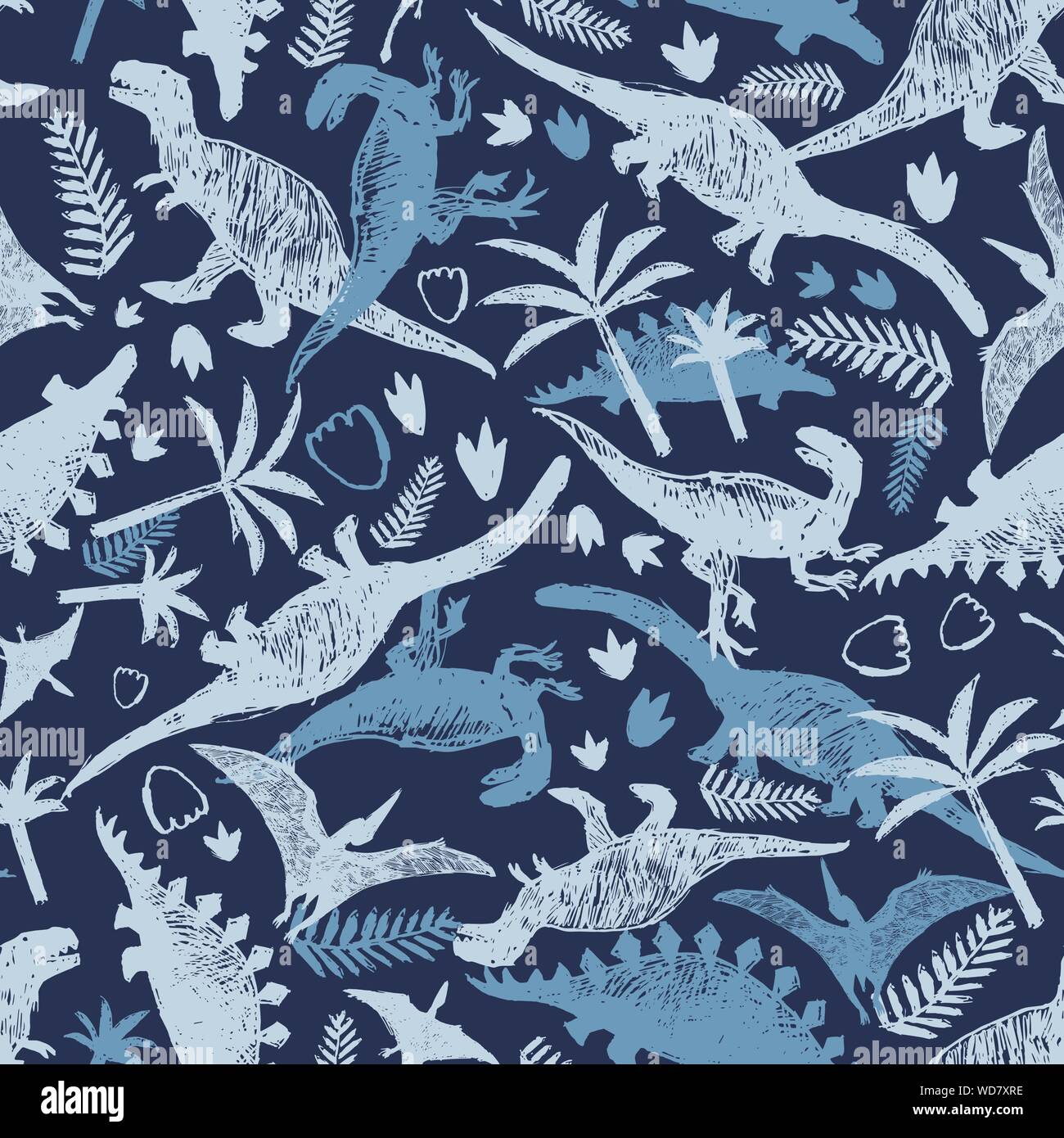 Vector Blue Dinosaur Sketch Repeat Pattern Perfect For Textile