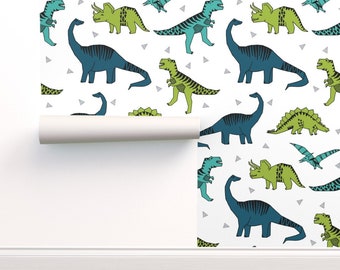 Peel And Stick Removable Wallpaper Dinosaur Navy Green Baby Dino