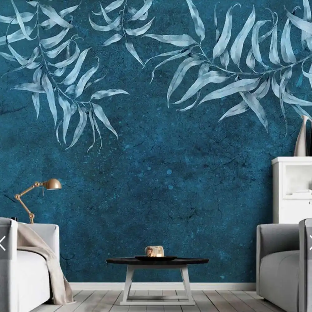 Nordic Leaves Wallpaper Mural Dark Blue Background Wall Papers