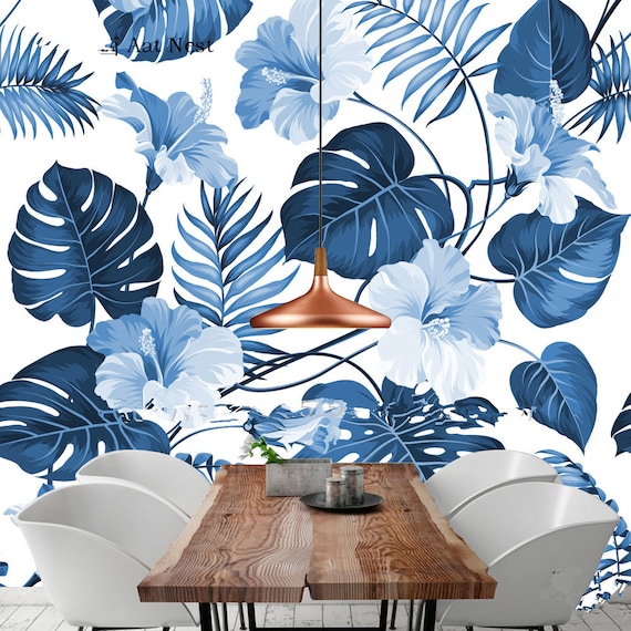 Fresh Simple Watercolor Blue Leaves Wallpaper Big Blue Etsy