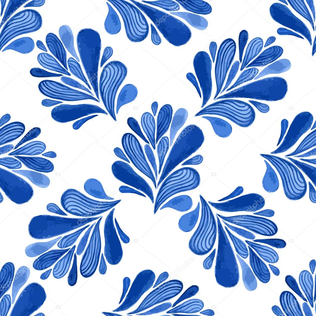 Watercolor Seamless Pattern Of Blue Leaves On A Vector Image