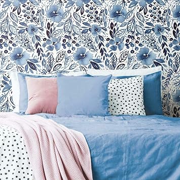 Roommates Decor Perennial Blooms Blue Peel And Stick Wallpaper