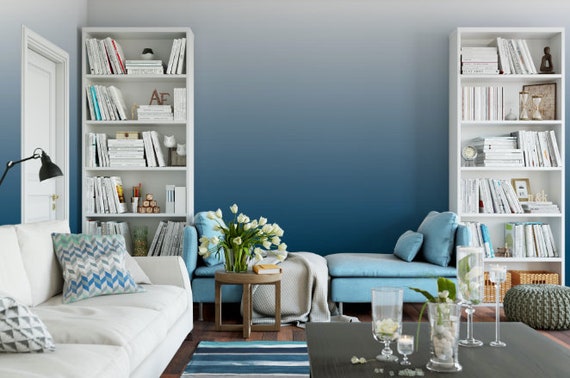 Blue Ombre Wallpaper Removable Wallpaper Peel And Stick Etsy