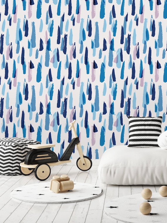 Blue Strokes Removable Wallpaper Peel And Stick Wallpaper Wall Etsy