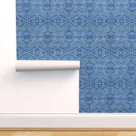 Peel And Stick Removable Wallpaper Boho Tribal Dots Blue White