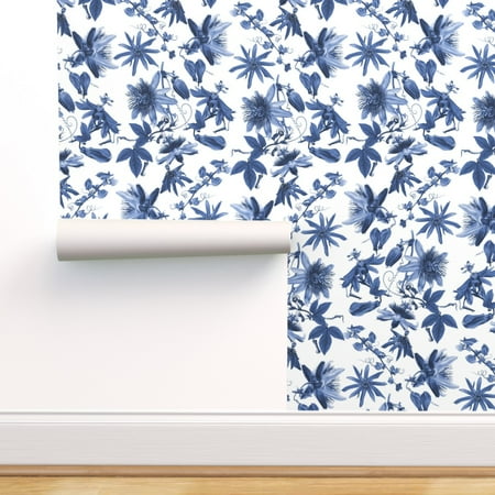 Peel And Stick Removable Wallpaper Blue White Floral Tropical